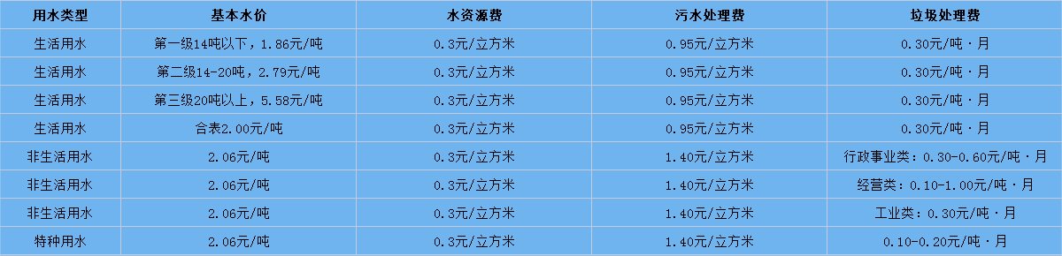 界首市自來(lái)水公司行業(yè)收費(fèi)項(xiàng)目清單